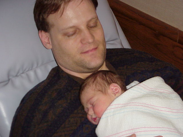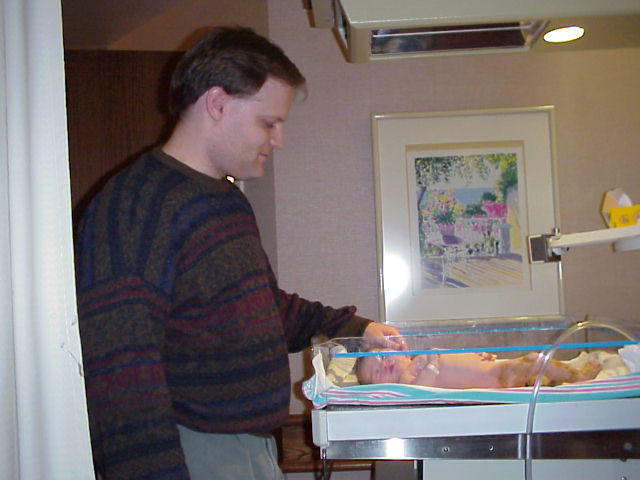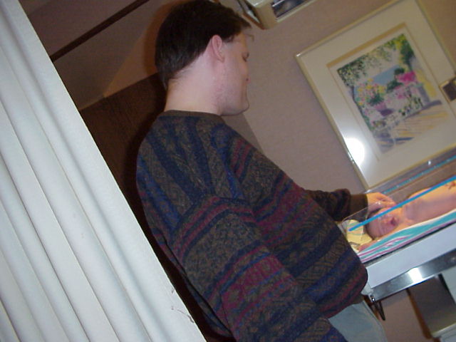 Tom with a very messy baby. Looks like the organs work they way they should. 2000 1 25 11:07:44 PM